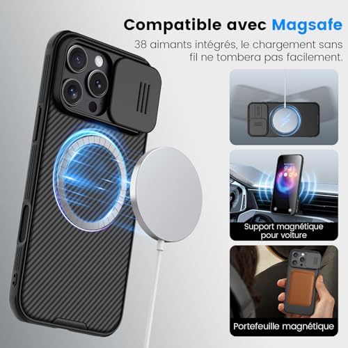 Nillkin - جراب حماية مغناطيس كام شيلد برو لموبايل آيفون 16 برو ماكس 6.9 بوصة متوافق مع ماج سيف [حماية الكاميرا] من نيلكين، جراب حماية نحيف وعصري لموبايل آيفون 6.9 برو ماكس - أسود