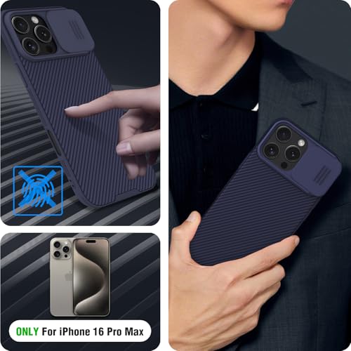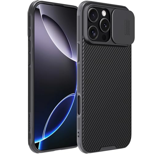 Nillkin - نيلكن حافظة حماية كلاسيكية لموبايل ايفون 16 برو ماكس مع غطاء كاميرا [واقي عدسة الكاميرا] [مقاوم للخدش] [حماية كاملة 360] جراب موبايل نحيف مضاد للصدمات 6.9 بوصة اسود TPU