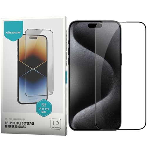Nillkin - واقي شاشة زجاجي مضاد للانفجار سي بي بلس برو من نيلكين، 0.33 ملم، 2.5D مصمم لموبايل ابل ايفون 15 برو ماكس - اسود