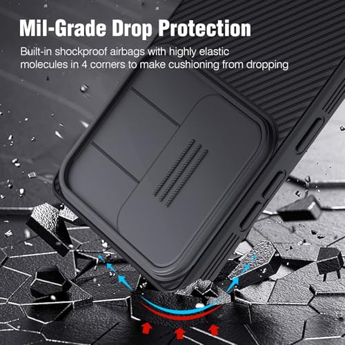 Nillkin - جراب لومبايل سامسونج جالاكسي S25 الترا مع غطاء كاميرا من نيلكن، جراب حماية صلبة مضادة للصدمات من الدرجة العسكرية، جراب موبايل رفيع مقاس 6.8 بوصة، أسود