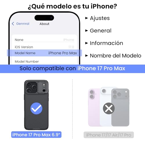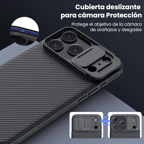 Nillkin - جراب حماية مغناطيسي مع غطاء منزلق للكاميرا لموبايل آيفون 17 برو ماكس، جراب حماية رفيع متوافق مع آيفون 17 برو ماكس 6.9 بوصة من نيلكن، لون أسود