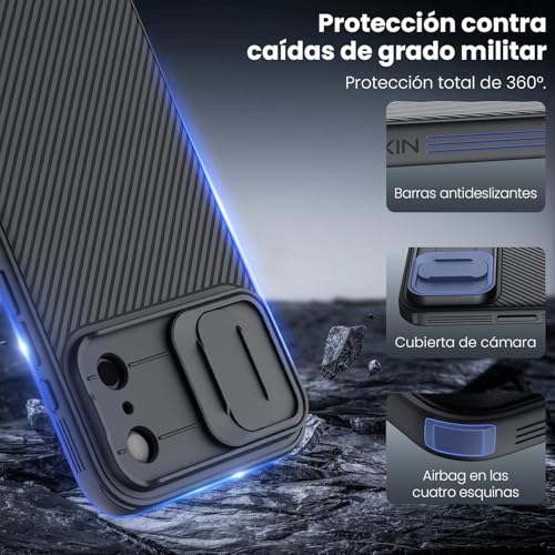 - غطاء كاميرا منزلق للحماية: يتميز الجراب بإطار مرتفع بحافة 1 ملم يحمي الكاميرا من الخدوش ويحافظ على خصوصيتك. قم بضبط الفجوة بدقة بين غطاء الكاميرا المنزلق والجراب، إنه غطاء الكاميرا سهل الانزلاق ولكن ليس من السهل فكه.