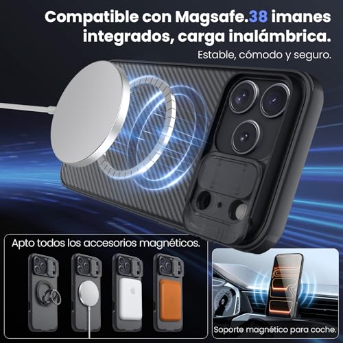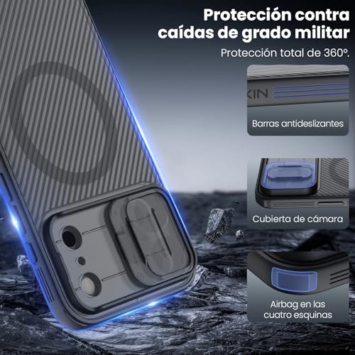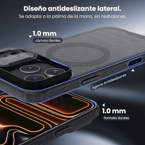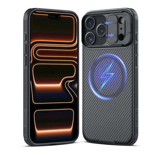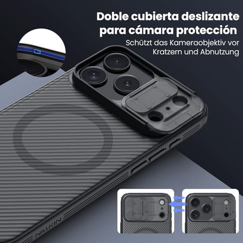 Nillkin - جراب حماية مغناطيسي مع غطاء منزلق للكاميرا لموبايل آيفون 17 برو ماكس، جراب حماية رفيع متوافق مع آيفون 17 برو ماكس 6.9 بوصة من نيلكن، لون أسود شفاف