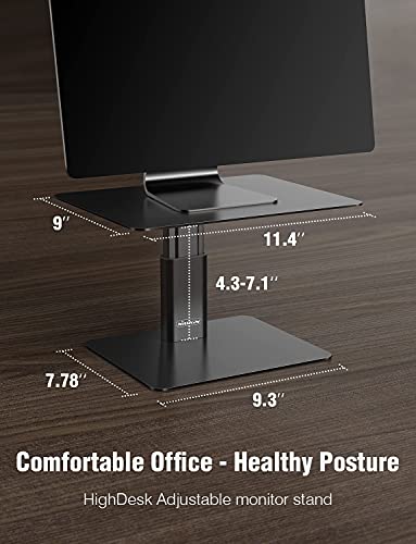 - 【أبعاد المنتج】حجمه الصغير (11.4 انش × 9 انش) مع المنطقة السفلية من حامل الشاشة هذا يوفر مساحة كافية للوحة المفاتيح والنوت بوك والهواتف والمزيد. الارتفاع القابل للتعديل من 4.3 إلى 7.1 انش، مما يسمح لك بتخصيص ارتفاع العرض الخاص بك.