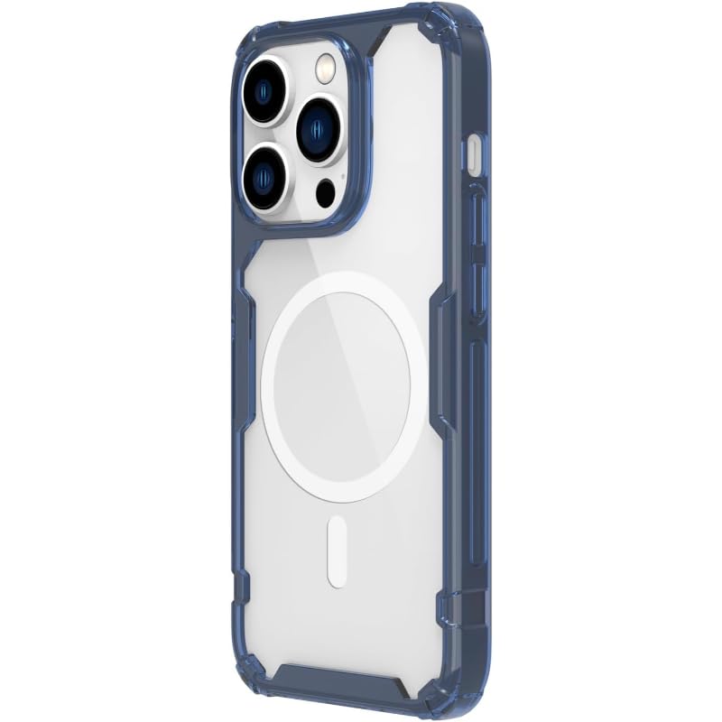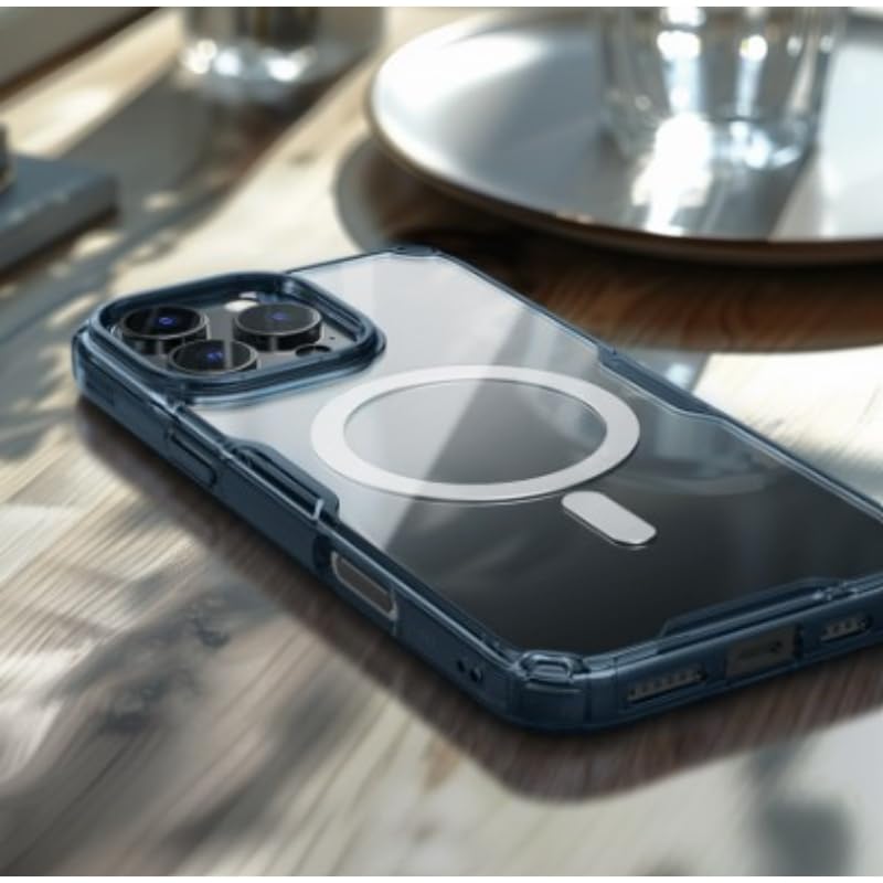 Nillkin - جراب حماية خلفي مغناطيسي صلب مضاد للصدمات من سلسلة برو من بولي يوريثين حراري طبيعي مع واقي كاميرا وإطار مرتفع ممتص للصدمات لموبايل آيفون 16 برو ماكس من نيلكن، أزرق