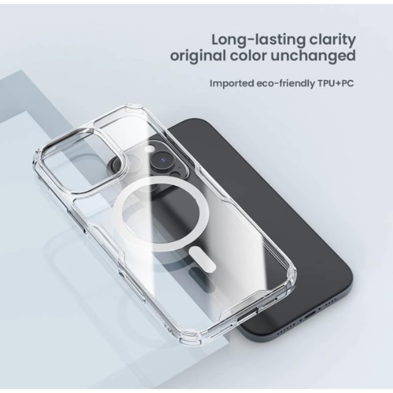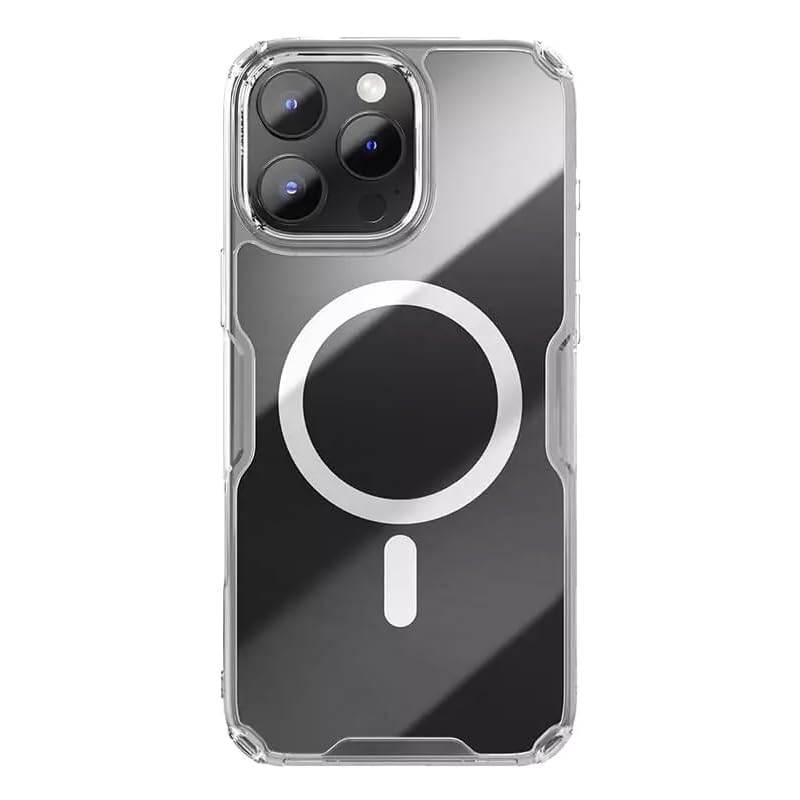 Nillkin - جراب حماية خلفي مغناطيسي صلب مضاد للصدمات من سلسلة برو من بولي يوريثين حراري طبيعي بواقي كاميرا بإطار مرتفع ممتص للصدمات لموبايل آيفون 16 برو ماكس من نيلكن - شفاف