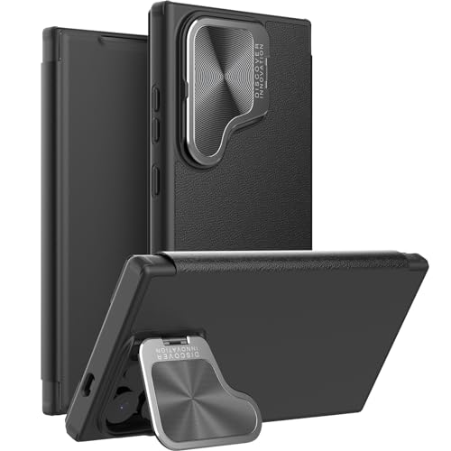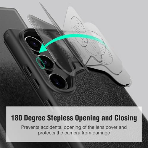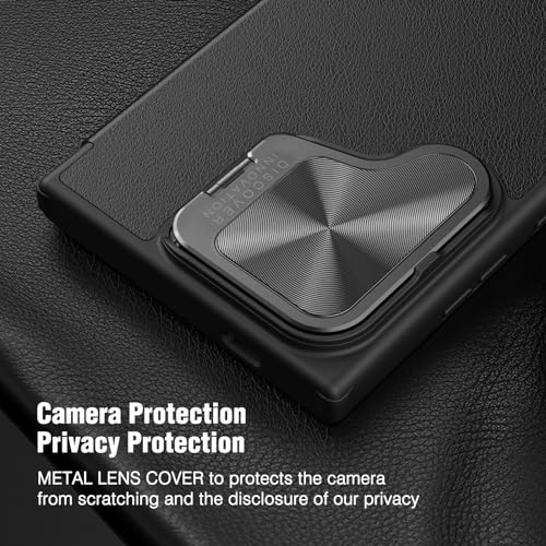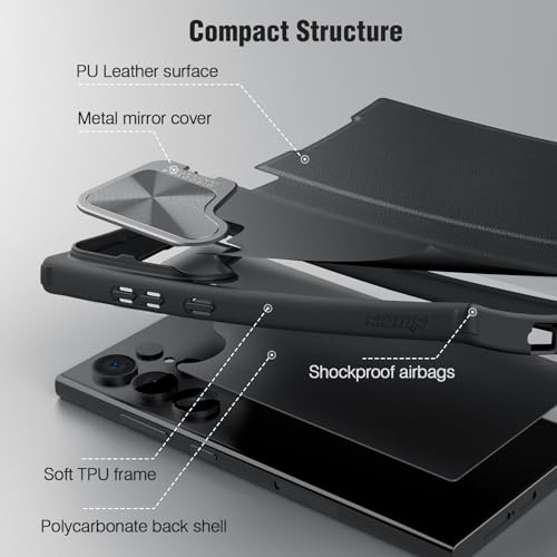 - نيلكن حافظة هاتف سامسونج جالاكسي S24 الترا من الجلد الصناعي الفاخر لهاتف جالاكسي S24 الترا مع غطاء كاميرا ومحفظة قابلة للطي، لون اسود، البولي يوريثين الحراري.