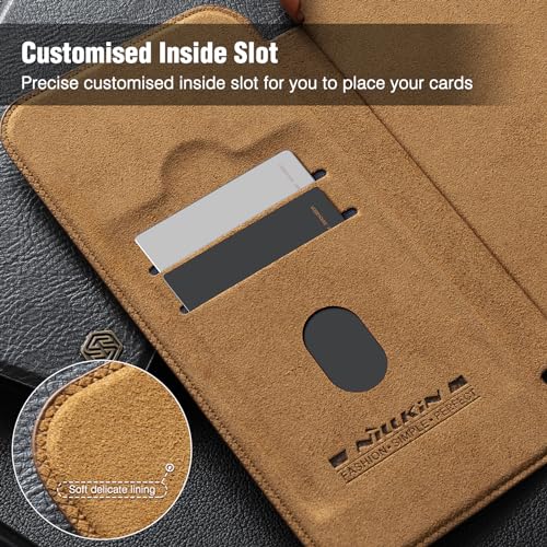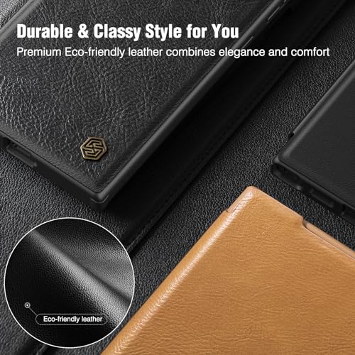Nillkin - نيلكن حافظة هاتف سامسونج جالاكسي S24 الترا من الجلد الصناعي الفاخر لهاتف S24 مع غطاء كاميرا ومحفظة قابلة للطي لون اسود البولي يوريثين الحراري