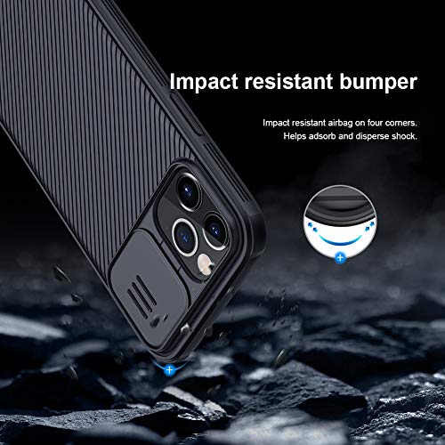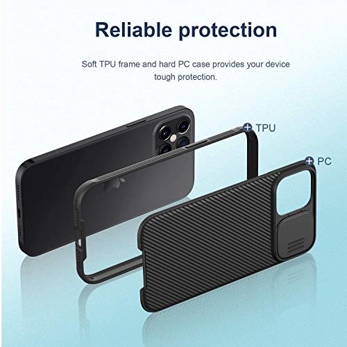 Nillkin - جراب من نيلكين لايفون 12 برو ماكس مزود بغطاء منزلق لحماية الكاميرا حماية انيق ورفيع متوافق مع موبايل ايفون 6.7 بوصة اسود البولي كربونات