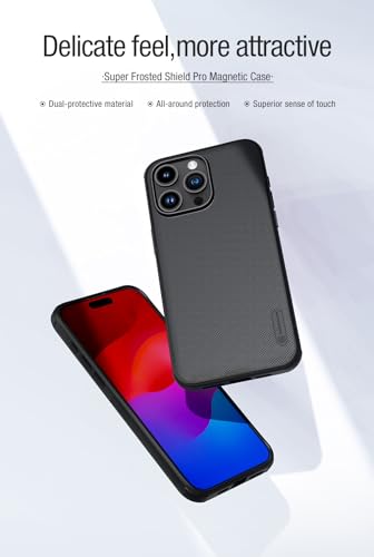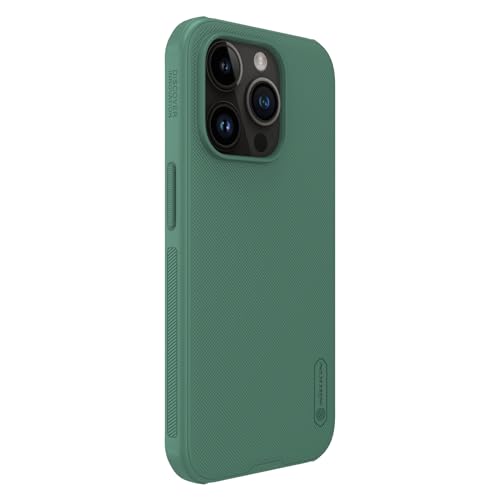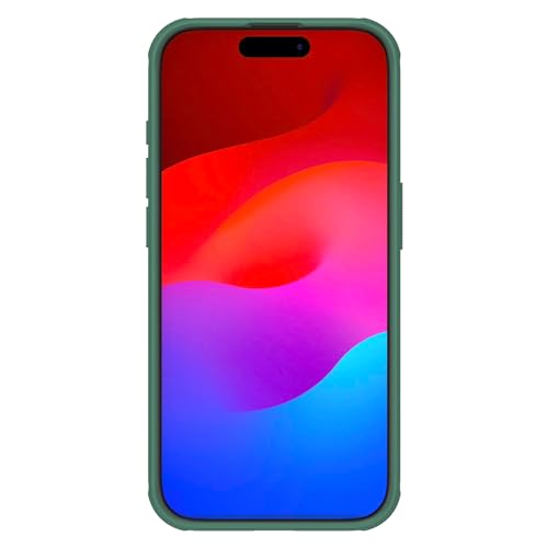 Nillkin - جراب سوبر فروستد شيلد برو مزود بحواف صلبة مرنة من نيلكن، غطاء ممتص للصدمات بإطار بارز لحماية الكاميرا بدون شعار لموبايل آبل آيفون 15 برو، أخضر غامق