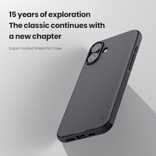 Nillkin - جراب سوبر فروستد شيلد برو مزود بحواف ناعمة صلبة ممتص للصدمات بإطار مرتفع لحماية الكاميرا وبدون فتحة للشعار متوافق مع آبل آيفون 16 من نيلكن - لون أسود