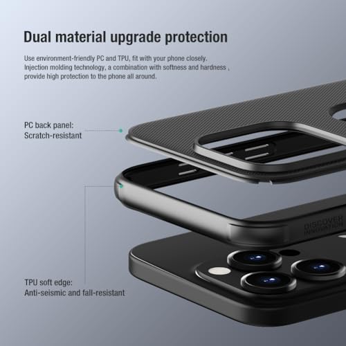 Nillkin - جراب حماية خلفي سوبر فروستيد شيلد برو سيريز مع فتحة للشعار لموبايل آبل آيفون 15 ماكس من نيلكن، لون أسود، البولي يوريثين الحراري