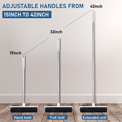 - 【مقبض قابل للسحب والتعديل】- إن المكنسة مجهزة بمقبض من الستانلس ستيل بثلاثة أقسام، حيث يمكن تعديل الطول من 15-42 بوصة، عن طريق إضافة وإزالة قضبان من الستانلس ستيل، يمكن التحكم في الطول بحرية، مما يوفر إمكانية الالتقاط والإمساك المريح لمختلف الأشخاص. يمكن للبالغين والأطفال استخدامها بسهولة تحتوي الفرشاة على فتحة للتعليق في الجزء العلوي من المقبض لتخزين الفرشاة على خطاف على حائط المطبخ والحمام، مما يوفر مساحة كبيرة.