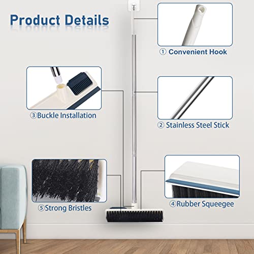 - 【مقشطة ومكنسة بفرشاة لتنظيف البلاط 2 في 1】- مكنسة بفرشاة فعالة وسهلة للتنظيف بدون مجهود + مكشطة للأرضية 2 في 1، قوة تنظيف قوية؛ فرشاة + مقشطة بخطوتين لإزالة البقع والأوساخ العنيدة والماء الغبار؛ رأس فرشاة دوارة 45 درجة، شعيرات محدبة مثلثة، لوحة ناعمة مطاطية، تسهل تنظيف كل الزاويا