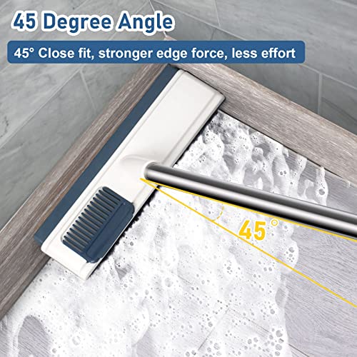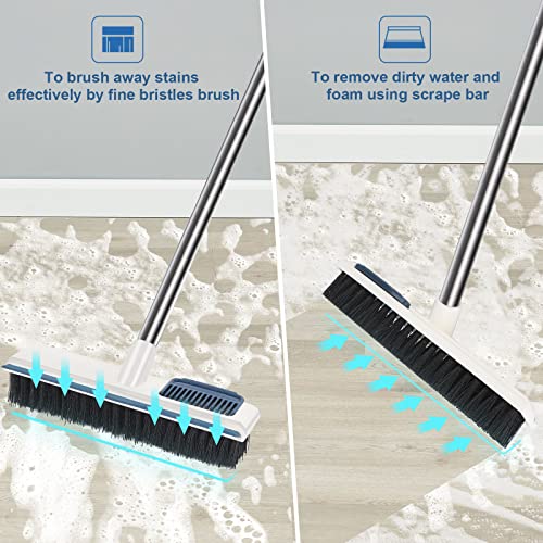 Nincee - فرشاة لتنظيف البلاط بمقبض طويل، فرشاة تنظيف 2 في 1، فرشاة ومقشطة للمطبخ والحمام والفناء والجدران والاسطح بقياس 43 بوصة، لون ابيض