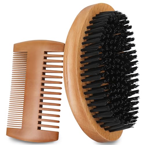 NINEMAX - فرشاة اللحية، مشط خشبي بشعيرات نايلون ناعمة، مجموعة العناية بالوجه للرجال لوضع زيت تصفيف الشارب من نينماكس