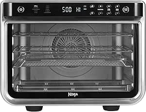 Generic - فرن متعدد الوظائف 10 في 1 DT200ME بتصميم صغير وسريع لسطح الطاولة مزود بمقلاة هوائية و10 برامج طهي للبيتزا والشواء والتوست والخبز والبيجل وغيرها لتحضير وجبات عائلية بسهولة من نينجا فودي، فضي/أسود