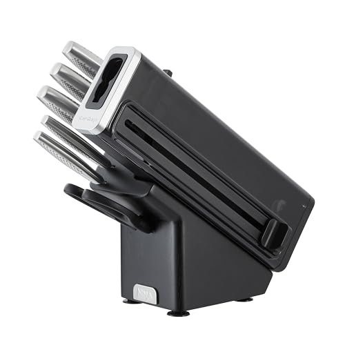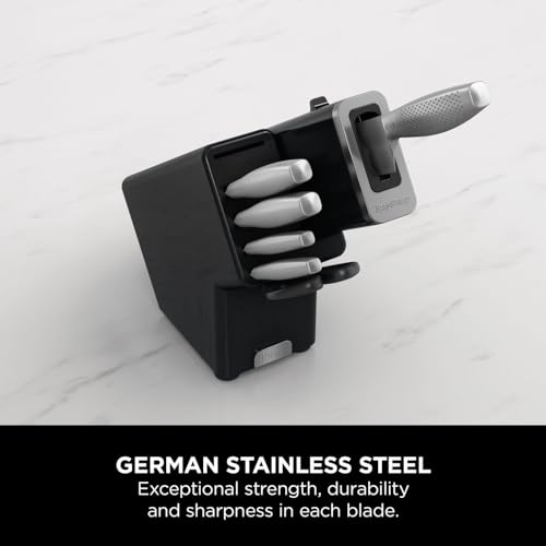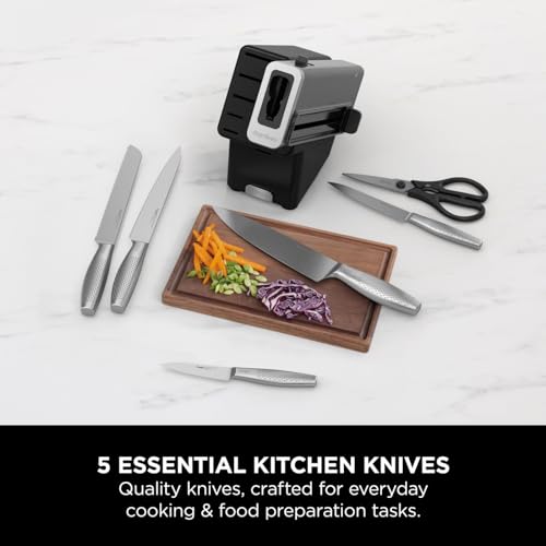 NINJA - مجموعة سكاكين ستاي شارب من الفولاذ المقاوم للصدأ مكونة من 6 قطع مع سكينة مدمجة وسكين شيف وسكين تقطيع وسكين خبز وسكين هواية وسكين تقشير ومقص مطبخ، رصاصي، من نينجا K62006EUUK