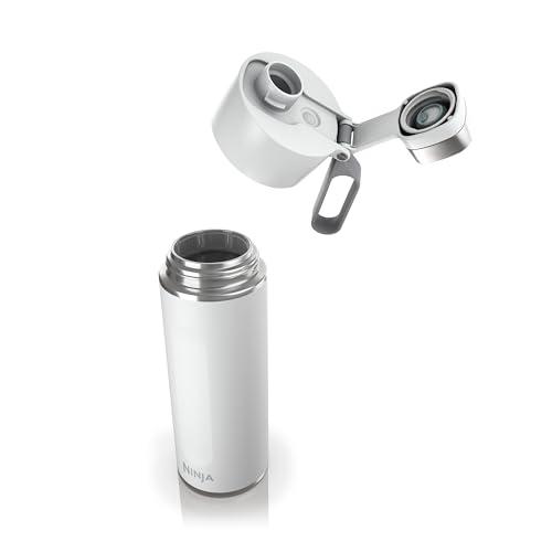 NINJA - زجاجة مياه وقارورة ثيرستي طراز DW1801EUUKWH مصنوعة من الفولاذ المقاوم للصدأ مع غطاء مانع للتسرب، مصممة للمشروبات الغازية والساخنة والباردة من نينجا، لون أبيض، سعة 530 مل
