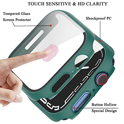 NINKI - هيكل واقي لساعات ابل سيريس 7 للنساء من نينكي مقاس 45 ملم مع شاشة مضاد للخدش حافظة صلبة مضادة للصدمات ووتش اي خامة واقية لون اخضر بولي كربونات.