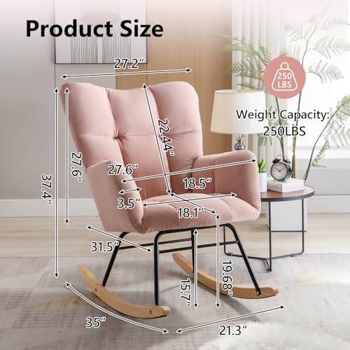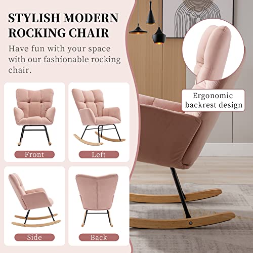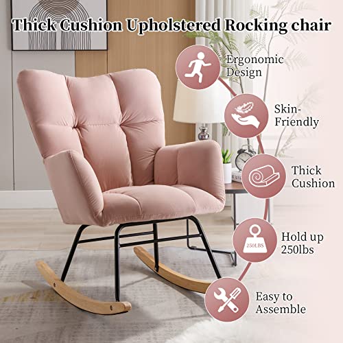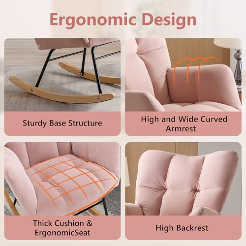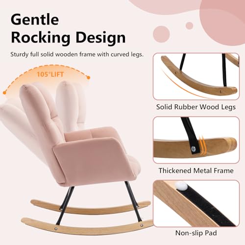 NIOIIKIT - كرسي هزاز لغرف الاطفال من نيويكيت، كرسي هزاز مخملي منجد، مقعد مبطن مع مسند ظهر مرتفع، كرسي جانبي مريح لغرفة المعيشة وغرفة النوم والمكاتب (مخملي زهري فاتح)، اسفنج
