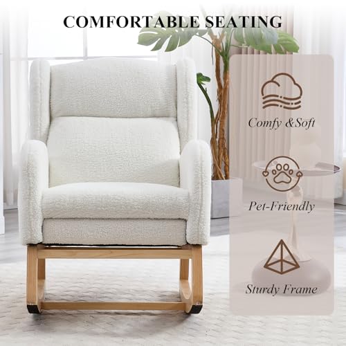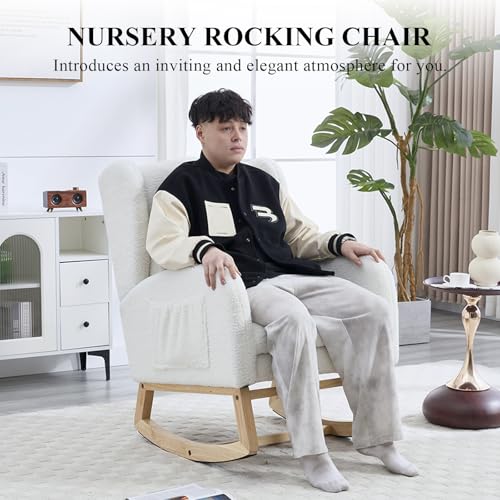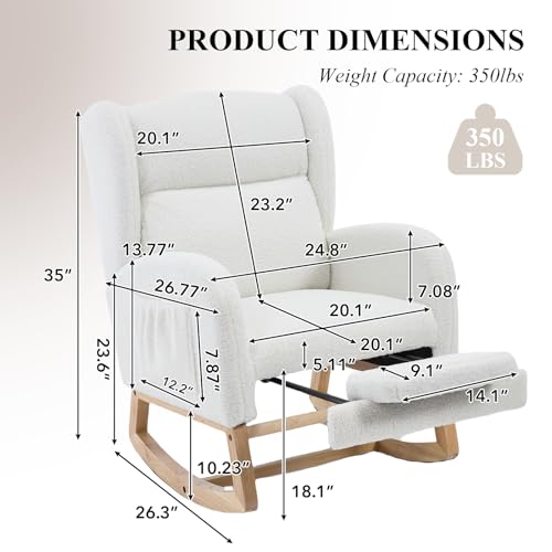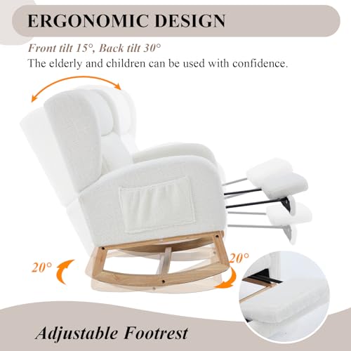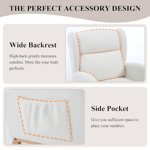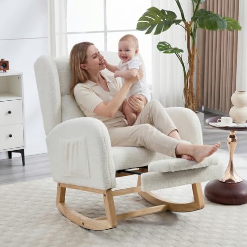 NIOIIKIT - كرسي هزاز للاطفال مع مسند للقدمين من نيويكيت، كرسي منزلق منجد، كرسي اطفال هزاز مع جيب جانبي، كرسي قراءة لغرفة المعيشة (ابيض تيدي)