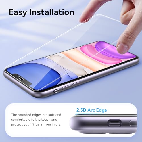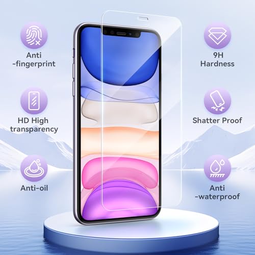 - [درجة صلابة 9، مقاومة للعرق وبصمات الأصابع] واقي شاشة ايفون 11 هذا مصنوع من زجاج عالي الجودة. تتميز بمقاومة للخدش والتآكل والصدمات. يمكنه حماية موبايلك بشكل فعال من الغبار والأوساخ والزيوت وبصمات الأصابع والخدوش وبصمات الأصابع وسهل التنظيف.