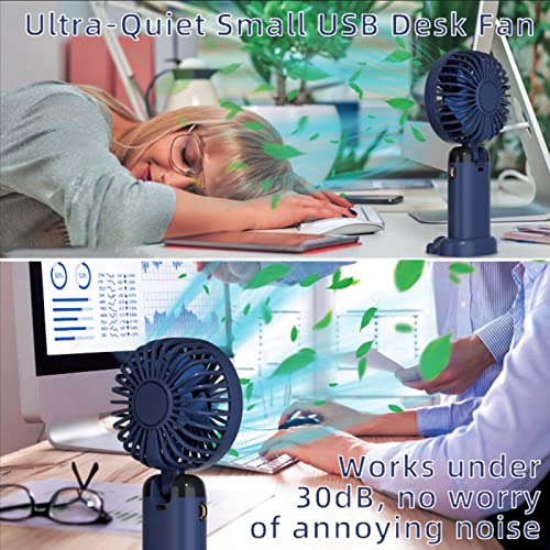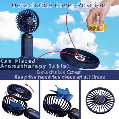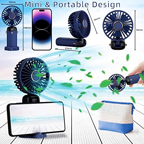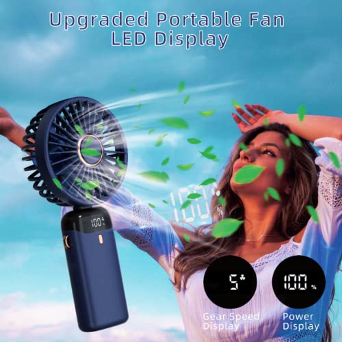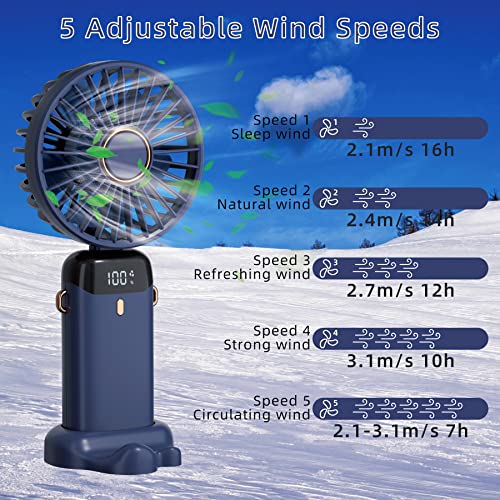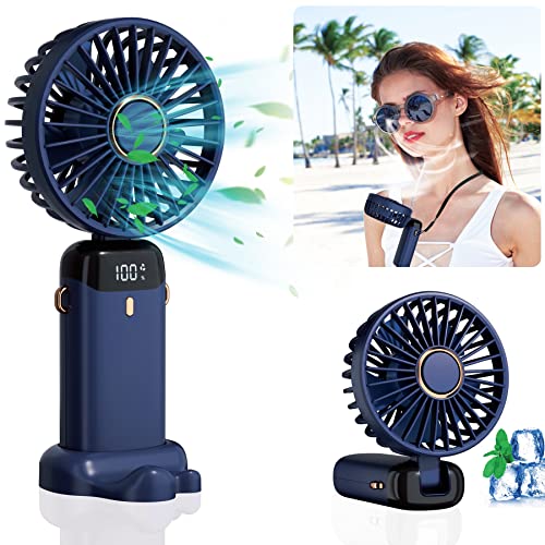 NIRIAHO - مروحة محمولة، شخصية، مروحة صغيرة قابلة لإعادة الشحن عبر USB، مروحة مكتب قابلة للطي، بطارية 5000 مللي أمبير في الساعة [وقت تبريد 16 ساعة] مع 5 سرعات مثالية للسفر/التخييم (أزرق غامق) من نيرياهو