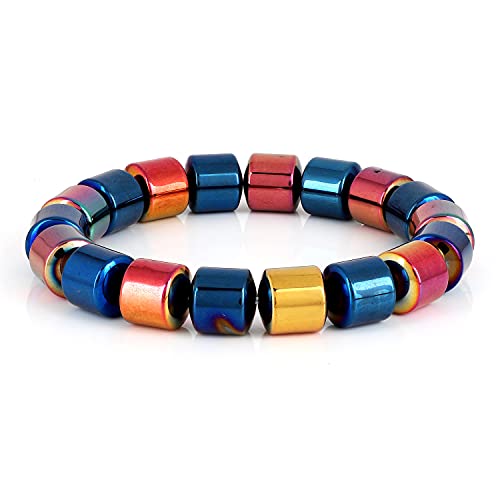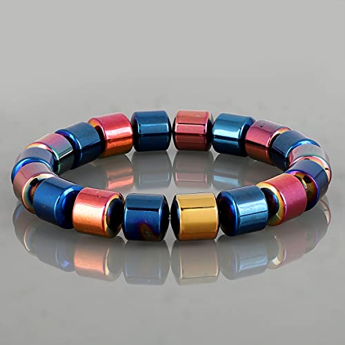NirvanaIN - سوار مطاطي من خرز الهيماتايت الغامض الطبيعي الناعم من نيرفاناين (18 سم) خرز مصنوع يدويا، للنساء