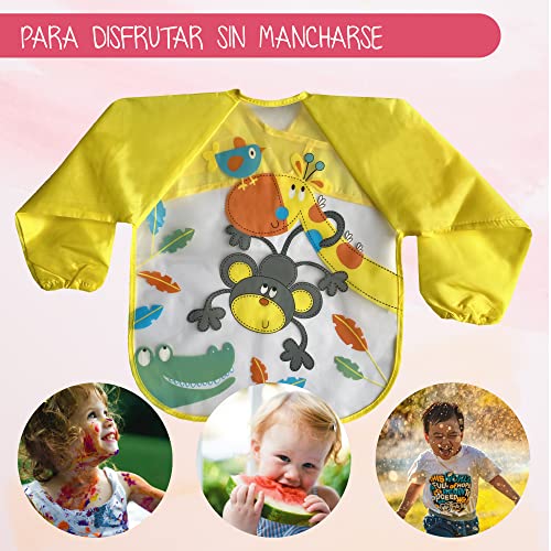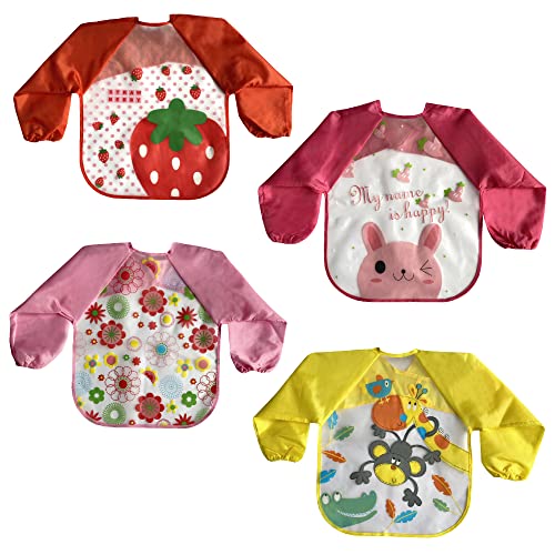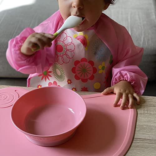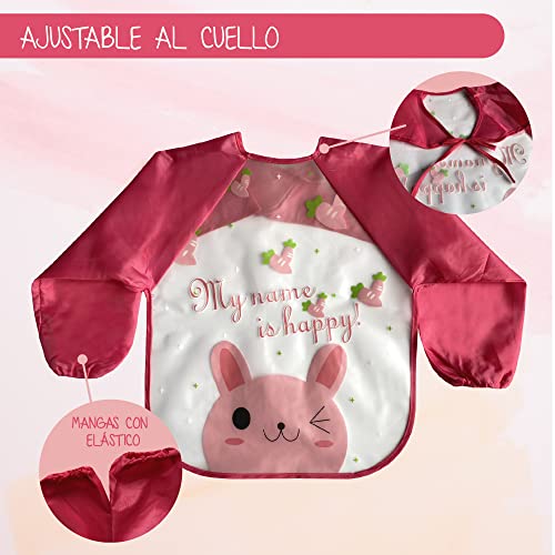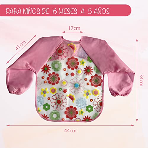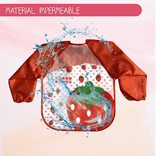NISITI - مريلة اطفال مقاومة للماء من نايستي، تاتي مع مريلة رقبة قابلة للتعديل باكمام للاولاد والبنات، مناسبة لتناول الطعام والشرب في دور الحضانة (0-5 سنوات), وردي وأحمر