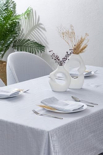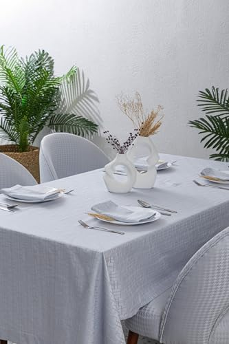 nit - طقم مفرش طاولة من نيت - جاكار - رمادي فاتح - كبير (800 تي سي) - قطن مصري 100%