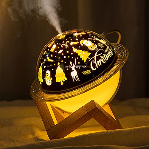 NIUAWASA - موزع زيوت عطرية بتصميم مصباح على شكل قمر بسعة 250 مل، ثلاثي الأبعاد ومرطب بالموجات فوق الصوتية بإضاءة ليد بثلاثة ألوان وشحن USB مع حامل خشبي للأطفال والأصدقاء والمحبين للكريسماس، 12.7 سم من نيواسا