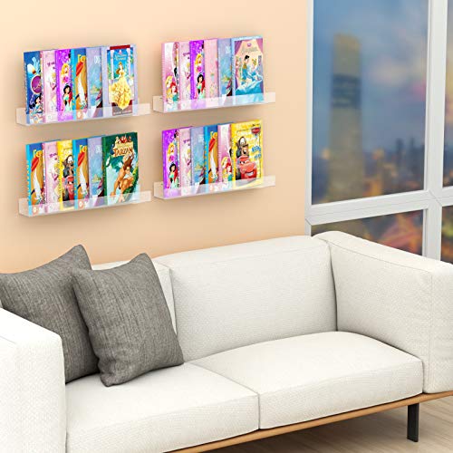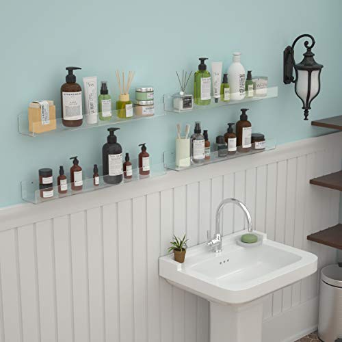 NIUBEE - نيوبي رف كتب معلق من الاكريليك الفاخر مقاس 24 انش شفاف غير مرئي لتخزين التوابل في الحمام ارفف عرض وسمك بنسبة 50% مع مفك براغي مجاني مجموعة 4 قطع مصقول