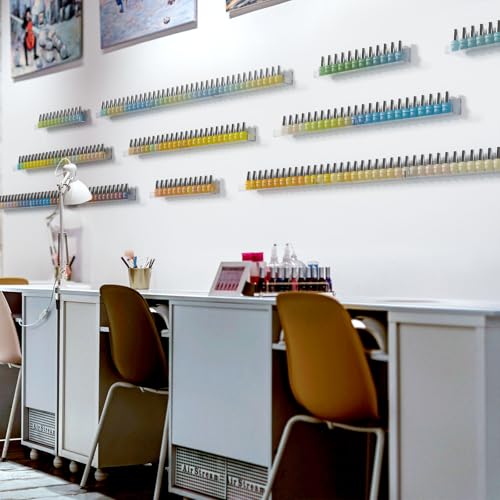 NIUBEE - رف طلاء اظافر يثبت على الحائط من نيوبي 6 قطع مع حشوات طرفية قابلة للازالة ومضادة للانزلاق منظم اكريليك شفاف لعرض 90 زجاجة