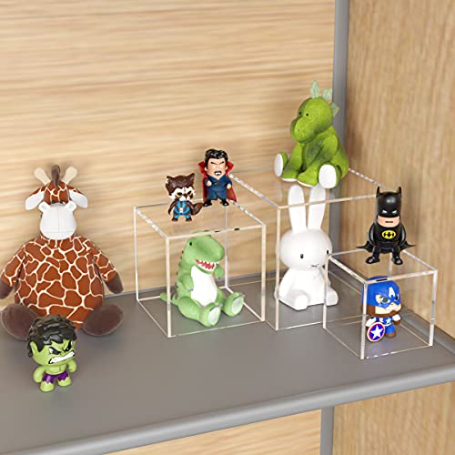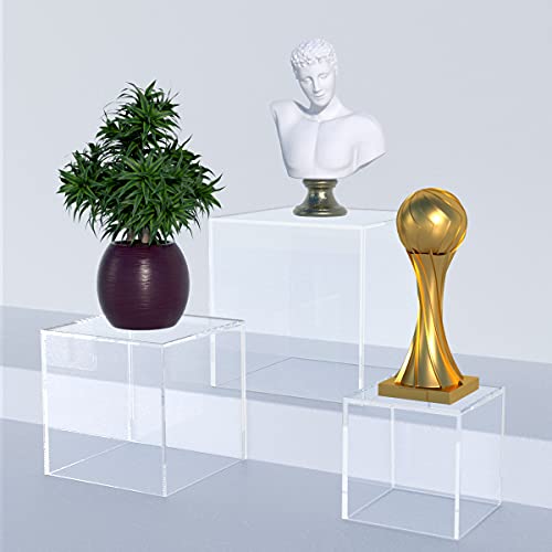 NIUBEE - صندوق عرض اكريليك، 3 قطع قاعدة رفع مكعبة شفافة، بأبعاد 10.16×10.16×10.16 سم و12.7×12.7×12.7 سم و15.24×15.24×15.24 سم، صندوق عرض متحفي 5 جوانب لحفظ المقتنيات من نيوبي