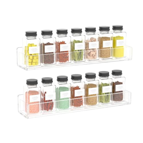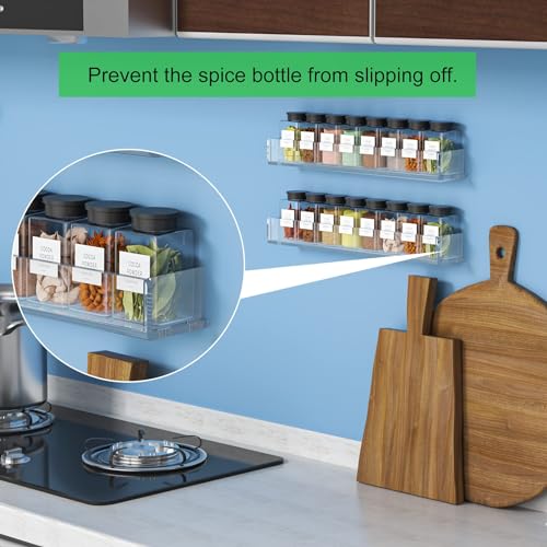 NIUBEE - منظم توابل يثبت على الحائط، رف بهارات من الأكريليك الشفاف، حامل تخزين يعلق في المطبخ نيوبي، عبوة قطعتين