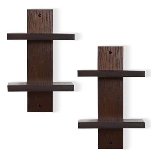 NIUBEST - وحدة رفوف حائط عمودية من طبقتين من نيوبيست، ارفف عائمة عمودية، رفوف ديكور عصرية قابلة للتكديس لديكور المنزل وغرفة المعيشة وغرفة النوم والمكتب، شديدة التحمل، قطعتين (خشب الجوز)