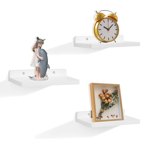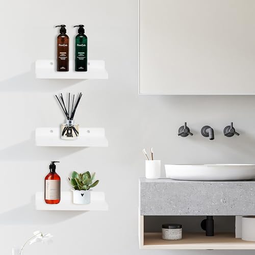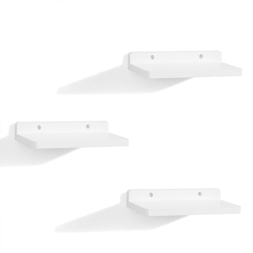 NIUBEST - رف عائم صغير من نيوبيست، 5 × 8.5 انش، مجموعة من 3 ارفف حائط صغيرة لغرفة النوم وغرفة المعيشة والحمام والمطبخ والمكتب (ابيض)