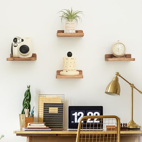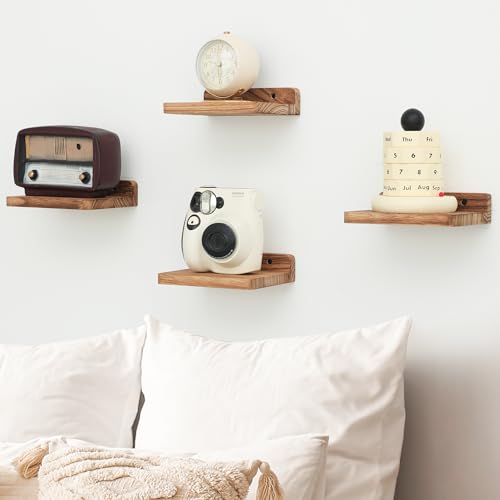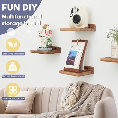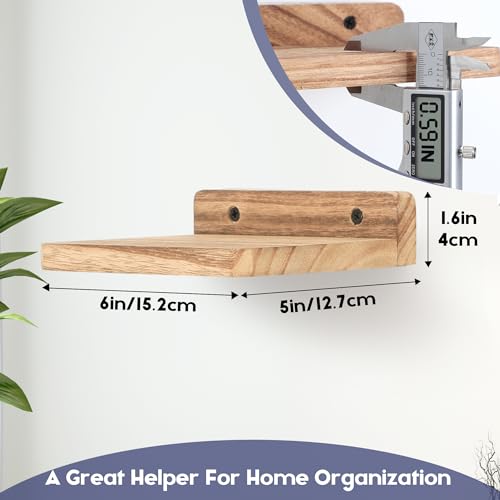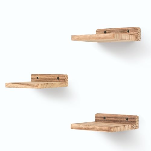 NIUBEST - رف عائم صغير من نيوبيست، 5 × 6 انش، قضبان عرض للحائط، رف صغير، رف خشبي ريفي لغرفة النوم وغرفة المعيشة والحمام والمطبخ (3، اسود مكربن)