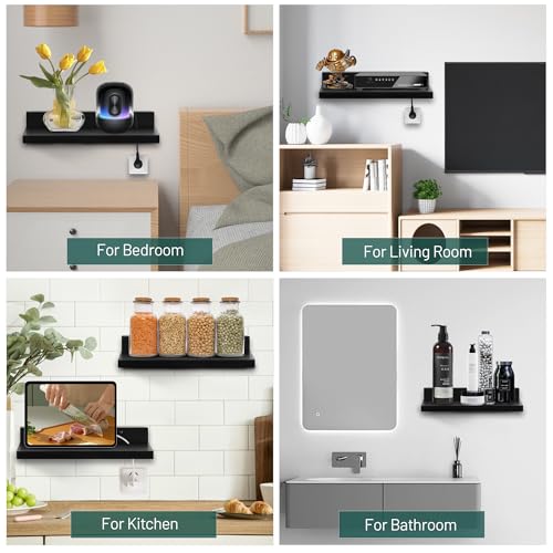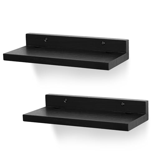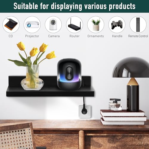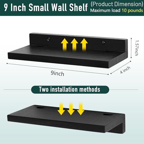 NIUBEST - رف عائم صغير للحائط من نيوبيست، رف يثبت على الحائط 9 انش مع فتحة حبل، ارفف عرض صغيرة للكاميرات وكاميرا الويب والراوتر ومكبر الصوت الذكي وشخصيات الحركة - قطعتان (اسود)