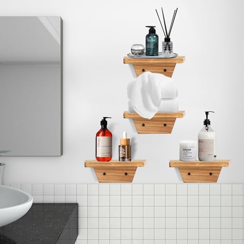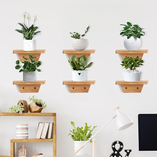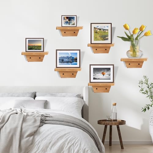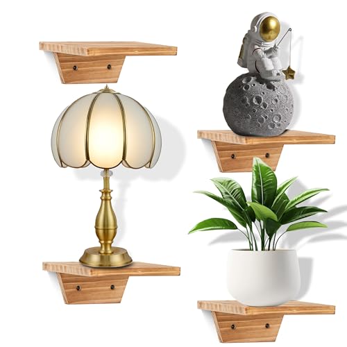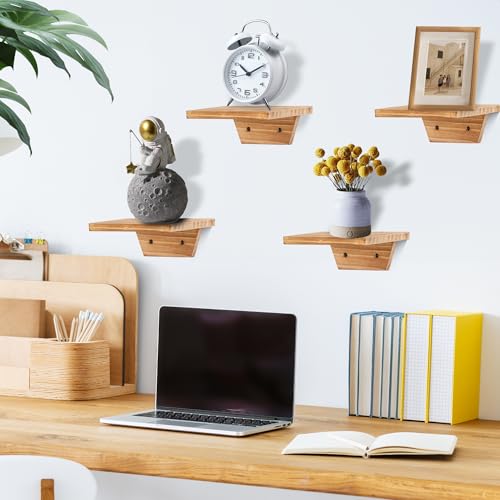 NIUBEST - ارفف عائمة صغيرة من نيوبيست، رف مكبر صوت، رف حائط شبه منحرف لطاولة مصباح عرض النباتات، حواف خشبية مزخرفة انيقة لغرفة المعيشة وغرفة النوم والمطبخ والمكتب والصنوبر، 20×15 سم، 4 قطع (بني كربوني