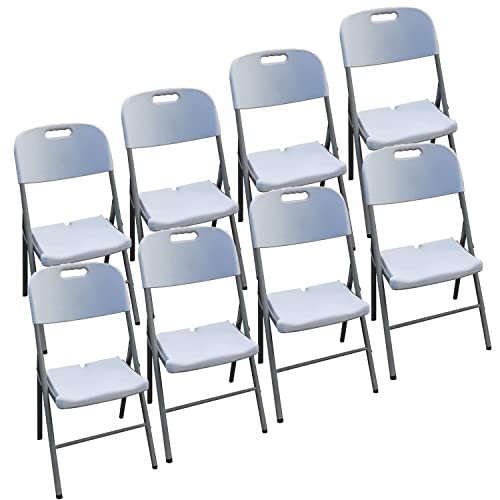 NIUTA - كرسي قابل للطي من سبيكسلب - 8 قطع البلاستيك المحمول للاستخدام الداخلي والخارجي سعة 350 باوند - ابيض فولاذ مقاوم للصدأ
