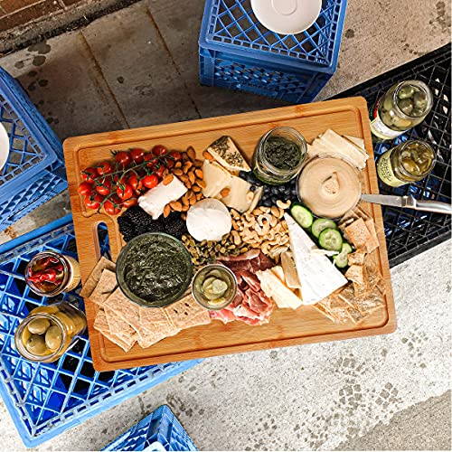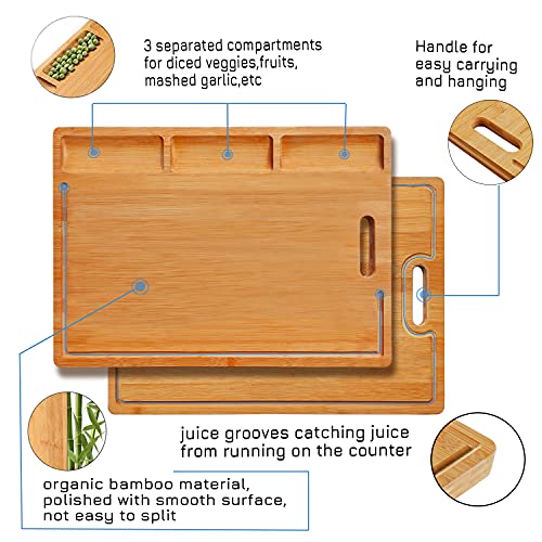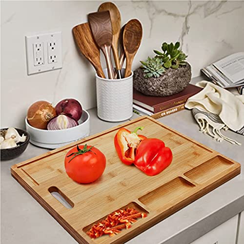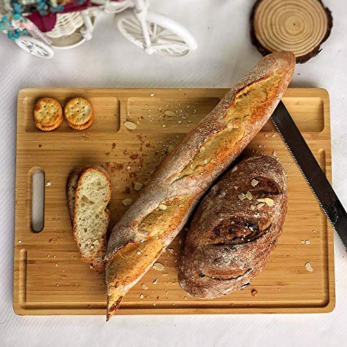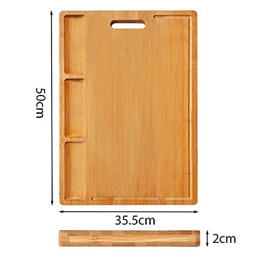 NIUXX - لوح تقطيع من الخيزران للمطبخ، لوح تقطيع كبير للغاية مع مساحات تخزين مدمجة وأخاديد عصير، لوح تقطيع منحوت بمقبض، لوح تقطيع للحوم والخضروات والخبز والفواكه من نيوكسكس، مقاس 50 × 36 × 2 سم
