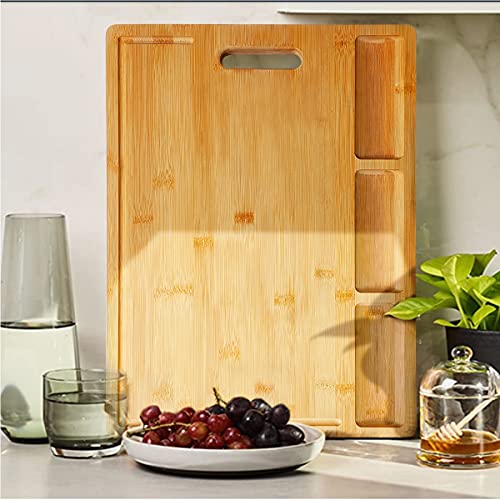 - [تصميم فريد] يحتوي لوح التقطيع على ثلاث مساحات تخزين لوضع الثوم المهروس والخضروات المقطعة والجبن مؤقتًا. وهناك أخاديد عصير حول لوح المطبخ لتجنب تدفق مياه العصير. حافظ على نظافة المطبخ.