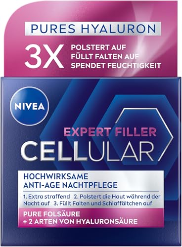 - محتويات الصندوق وتفاصيله: كريم ليلي نيفيا Cellular Expert Filler فعال للغاية ومضاد للشيخوخة، 50 مل، كريم هيالورونيك لشد وتمتلئ، يملأ التجاعيد وتجاعيد النوم، رقم المنتج: 82386