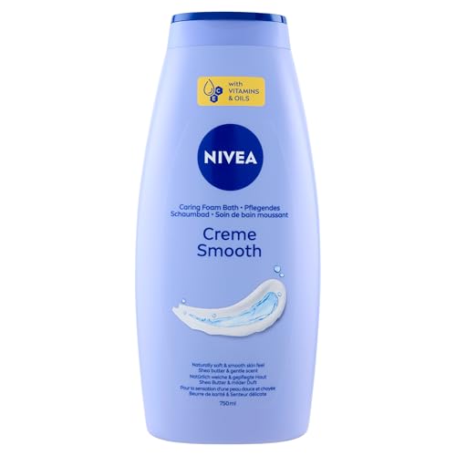 NIVEA - كريم سموث جل استحمام 750 مل من نيفيا، غسول للجسم بتركيبة تنظيف وكريم مخملية، جل استحمام غني بزبدة الشيا، فيتامين C وE وزيوت مغذية مع عطر لطيف