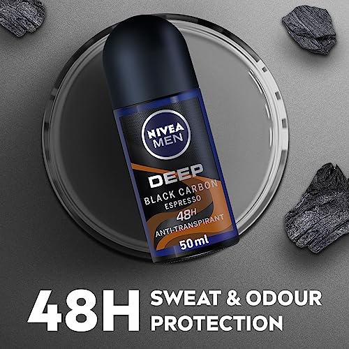 NIVEA - مضاد للتعرق رول اون للرجال من نيفيا، مضاد للبكتيريا من الكربون الأسود العميق، برائحة الاسبريسو، 50 مل