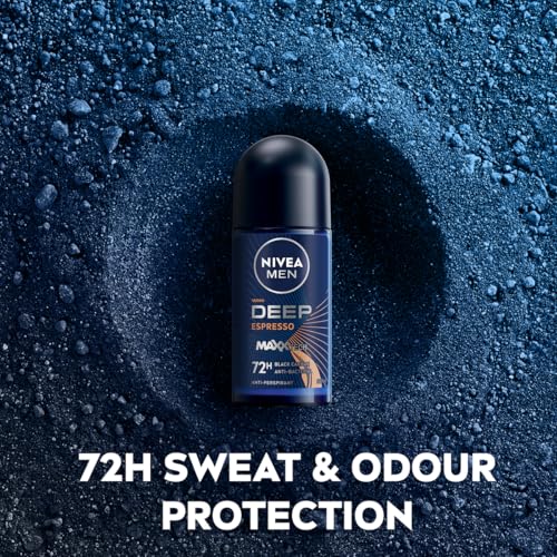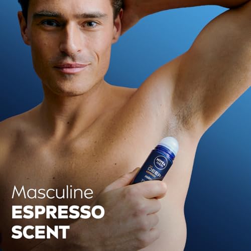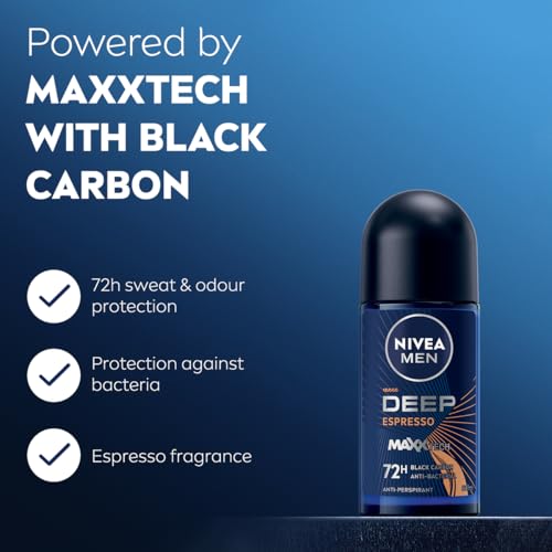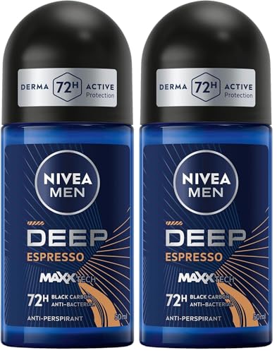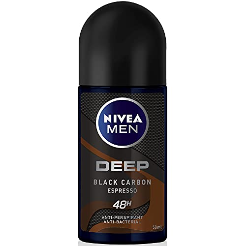 NIVEA - نيفيا مزيل عرق للرجال من ديب بلاك كاربون اسبريسو، مضاد للبكتيريا، رول اون 50 مل (عبوة من قطعتين)