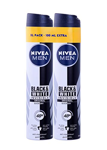 NIVEA - بخاخ مزيل رائحة عرق من نيفيا للرجال، انفيسيبل بلاك اند وايت، 2 × 150 مل، عديم الرائحة
