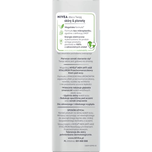 NIVEA MEN - نيفيا كريم عين هيالورون للرجال من مين (15 مل)، قوي مضاد للشيخوخة مع حمض الهيالورونيك، مرطب للعين للتجاعيد والخطوط الدقيقة،